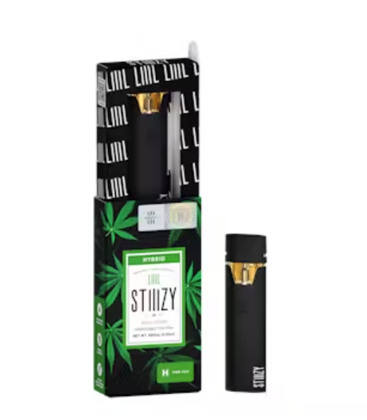 Infused blunt .5 g format with high THC levels up to 41–44 %. Blend includes a flower coated in extracts. STIIIZY style pink and teal tubes match brand visuals. Delivery via the Weedmaps menu shows high review scores of over 200 for the Pineapple Express pack. Blunt delivers an intense hit and lasting effect in a short session.