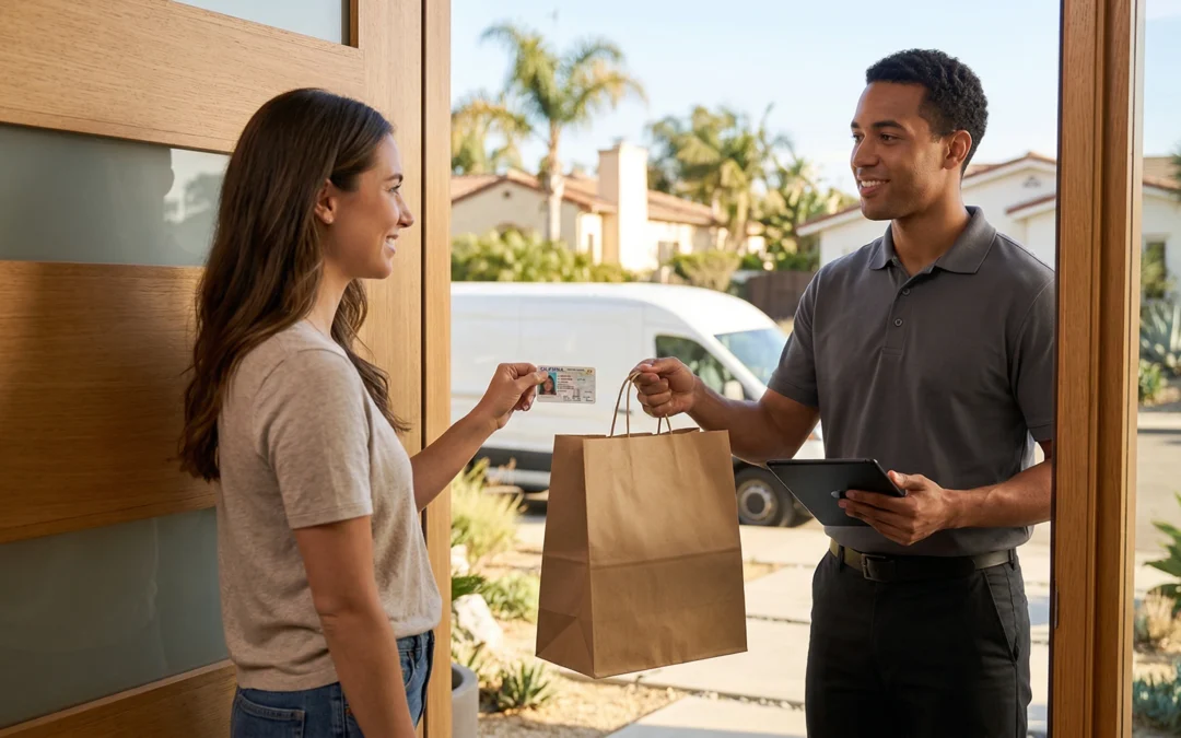 When the driver arrives, they will ask to see your ID in person. This is required by California law, every single time, no exceptions. The driver will check that your ID matches the name on your order and that you are 21 or older.